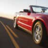 a-low-angle-view-of-a-convertible-sports-car-moving-on-a-highway-late-in-the-...